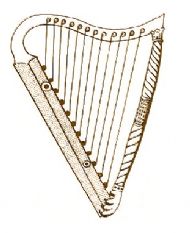 with gut. It is based loosely on a 12th century drawing from Saint Blasien, labelled "cythara anglica" or the English cythara. A cythara was an ancient Greek lyre, and the medieval artist is antiquising this contemporary harp, thereby increasing its stature.
